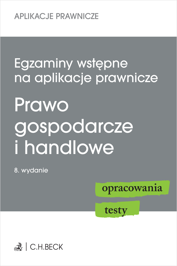 Publikacja to nieoceniona pomoc dla wszystkich osób przygotowujących się do egzaminów wstępnych na aplikacje prawnicze. Polecana również studentom przystępującym do egzaminów z prawa gospodarczego i handlowego. Książka została opracowana z myślą o potrzebach praktycznych – jej treść wywodzi się z własnych doświadczeń autorki w zakresie nauki, analizy aktów prawnych oraz przygotowań do egzaminów.