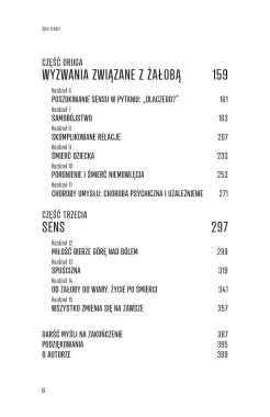 Autor, doświadczony terapeuta, który sam stracił syna, prowadzi czytelnika przez dobrze znane etapy żałoby: zaprzeczenie, gniew, targowanie się, depresję i akceptację. Zatrzymuje się jednak na szóstym etapie, czyli odnalezieniu sensu.