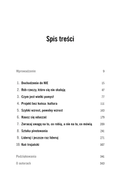 Wszystkie barwne historie, wnikliwe analizy i wnioski współczesnych założycieli i liderów zostały zebrane w niniejszą książkę. Łączą się w niej w zestaw praktycznych, choć często sprzecznych z intuicją, zasad. Jak wpaść na dobry pomysł i przekształcić go w skalowalny biznes? Czego możemy się nauczyć, słysząc „niepewne NIE”? Kiedy powinniśmy przestać słuchać naszych klientów? Które pożary należy gasić natychmiast, a którym można pozwolić się tlić? I czy próbując uczynić ten świat lepszym miejscem, można zarobić jakieś pieniądze? (Odpowiedź: Tak. Ale zyski i wartości muszą iść ze sobą w parze).